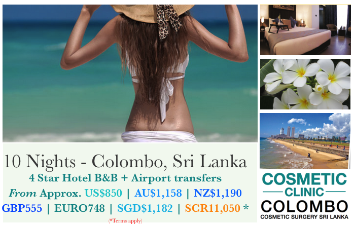 Previous Image Next Image Hotel stays in Colombo for cosmetic surgery clients. Sri Lanka Stay in Colombo for cosmetic surgery clients. Packages and airport transfers, B&B. 10 and 14 nights Stay in Colombo for cosmetic surgery clients. Packages and airport transfers, B&B. 10 and 14 nights Like Loading...
